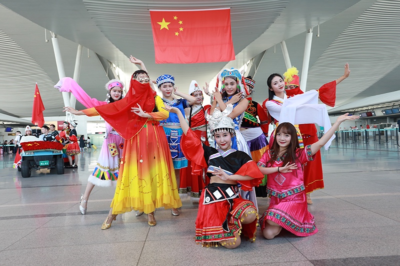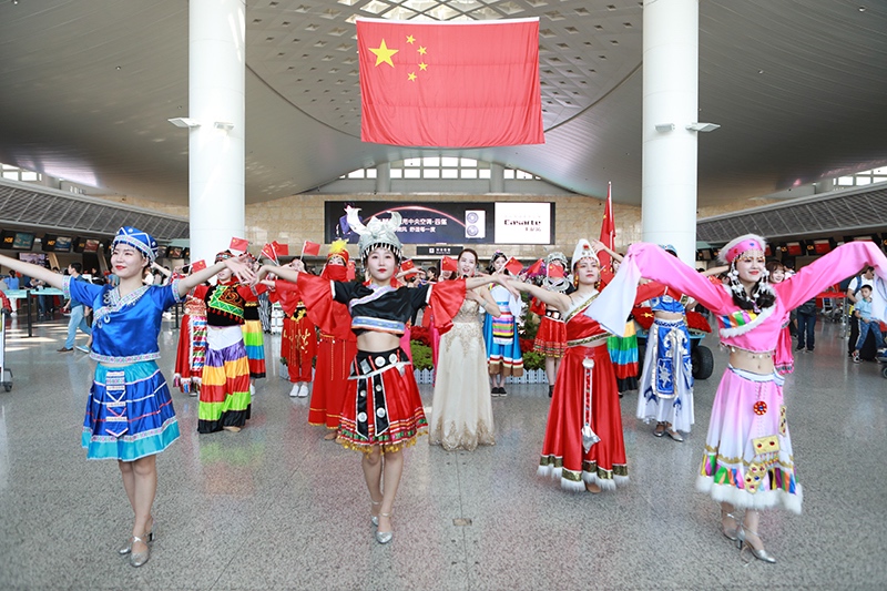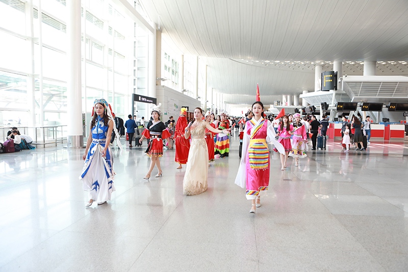 為迎接國慶佳節的到來,紀念祖國成立69周年,10月1日上午10點,航站區管理中心在3座航站樓開展以“民族團結-花車歌舞游行展”為主題的文化活動,由中心員工、駐樓商戶員工及演藝人員身著56個民族特色的傳統服飾,伴隨著裝飾了國旗圖案的花車在航站樓出發大廳內進行動態的游行展示,同時分別在3座航站樓公共區域表演了旅客們喜聞樂見的愛國歌舞,體現了祖國繁榮昌盛、56個民族團結富強的偉大盛舉?;顒舆M行的同時,工作人員向過往的旅客分發了小國旗,并送上節日祝福,吸引旅客駐足觀賞,紛紛拍照留影。此次活動是航站區中心第一次在樓內舉辦“動態”的文化活動,通過中秋、國慶兩場文藝演出的成功舉辦,進一步豐富了航站樓的文化元素,提升了航站樓的文化品質。