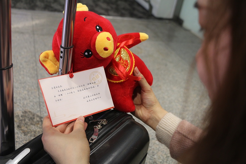 1月1日,83件系著豬年玩偶和新年賀卡的托運行李驚喜亮相T3航站樓B10行李轉盤。這是航站區中心組織策劃的"好運首開,錦鯉呈祥"新年活動,在地勤公司行李部的協助配合下,從廣州飛抵本場的CZ3803航班上的83件托運行李主人成為了新年"幸運錦鯉"。驚喜活動讓現場旅客興奮不已,紛紛拿出手機記錄下感動的一幕,開啟了2019年"溫暖航站樓"的序幕。(航站區中心 朱偉 任嘉婷)