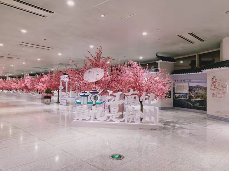 2019年1月下旬,通過與上城區(qū)旅游局合作,經(jīng)過兩個月的前期籌備策劃,在T1、T2連廊處推出了以“南宋印象”為主題的大型“沉浸式”文化長廊藝術(shù)展。展覽以南宋詩詞、皇家文化、南宋“四雅”等具有鮮明南宋特點的文化元素為主題,借此展示杭州的本土歷史文化,為航站樓增添一份歷史的文化氛圍。
