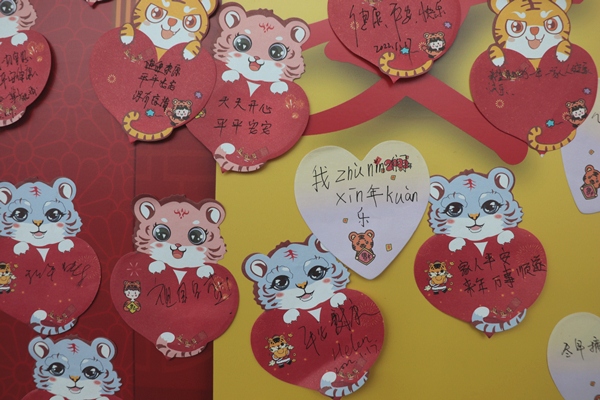 17日當天,航站區(qū)中心聯(lián)合FM93浙江交通之聲,在T1航站樓出發(fā)大廳搭建以中國地圖為背景的噴繪墻,來往旅客用絲線牽引出對家的思念,用便利貼寫下新年愿望,共同完成這面“思念墻”。