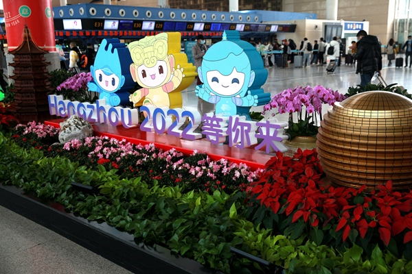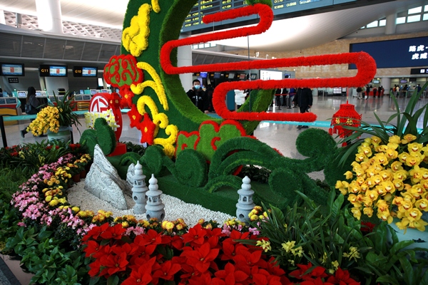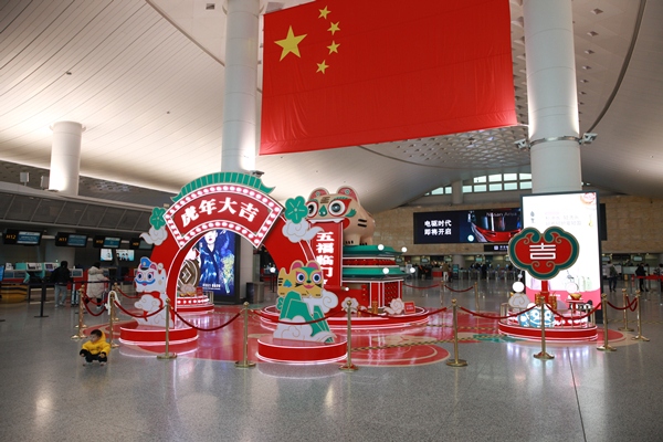 此外,為營造新春節(jié)日氛圍,航站區(qū)中心在出發(fā)大廳G值機島設(shè)置了虎年新春主題景觀,并結(jié)合杭州地域文化特色、亞運主題元素,在7號門、11號門等區(qū)域用綠化景觀打造“三潭映月”及亞運主題特色景觀,旅客紛紛打卡留念。