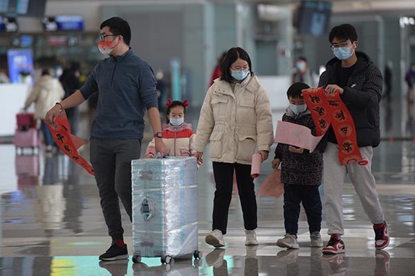 “今天打算坐飛機回家過年,進到航站樓發現有送春聯活動,很暖心。我們家正缺一副大氣的春聯,挺開心的,提前祝大家新年快樂。”旅客王女士一家收到新年春聯后欣喜地向工作人員說道。