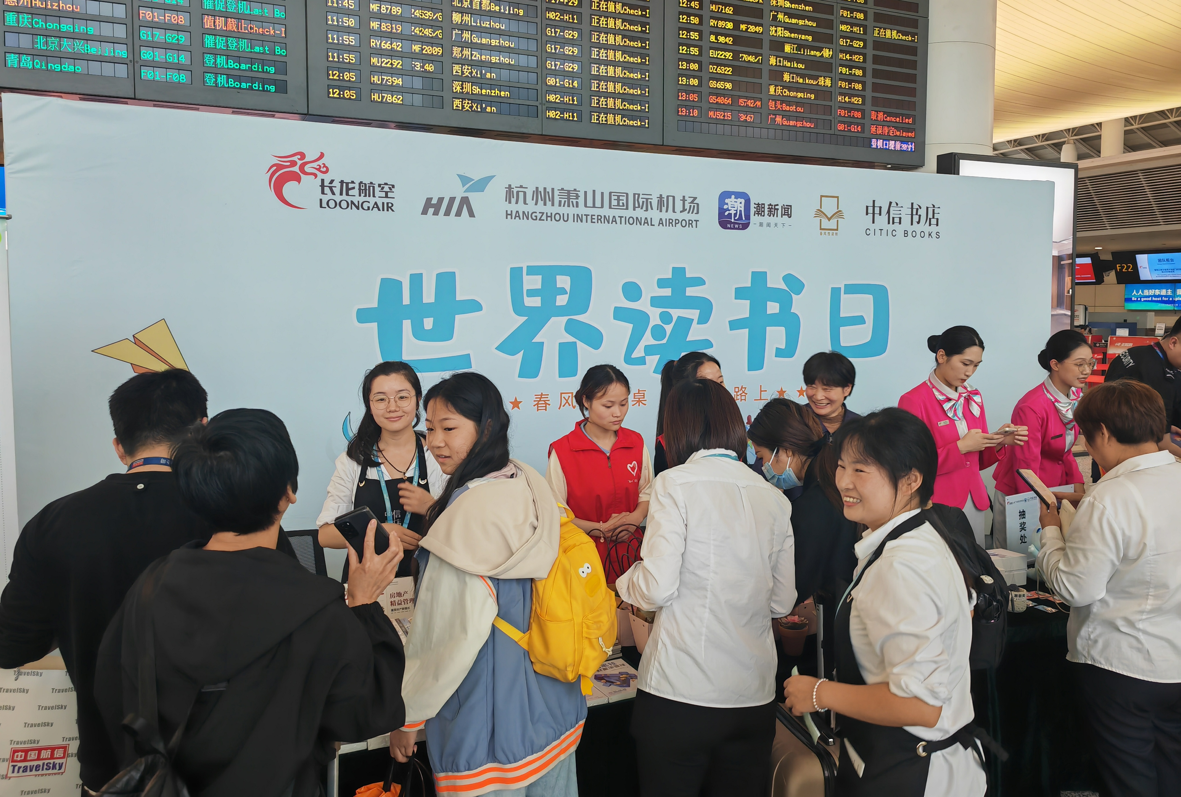 一本好書溫暖一段旅程。基于上周旅客熱情參與“讀書日”活動(dòng),當(dāng)天,杭州機(jī)場(chǎng)航站區(qū)中心再次聯(lián)合浙江長(zhǎng)龍航空、潮新聞、中信書店、長(zhǎng)箐園林等單位開展“春風(fēng)小書桌 閱讀在路上”讀書日主題活動(dòng),向旅客分享近百本好書和精美綠植盆栽。