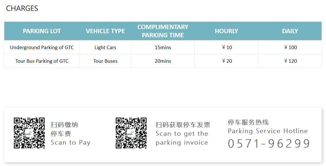 Underground Parking of GTC: This parking garage is located on the B1-B4 floors of the traffic center. You can drive on the left ground road of Airport Road 1 and go straight to enter.