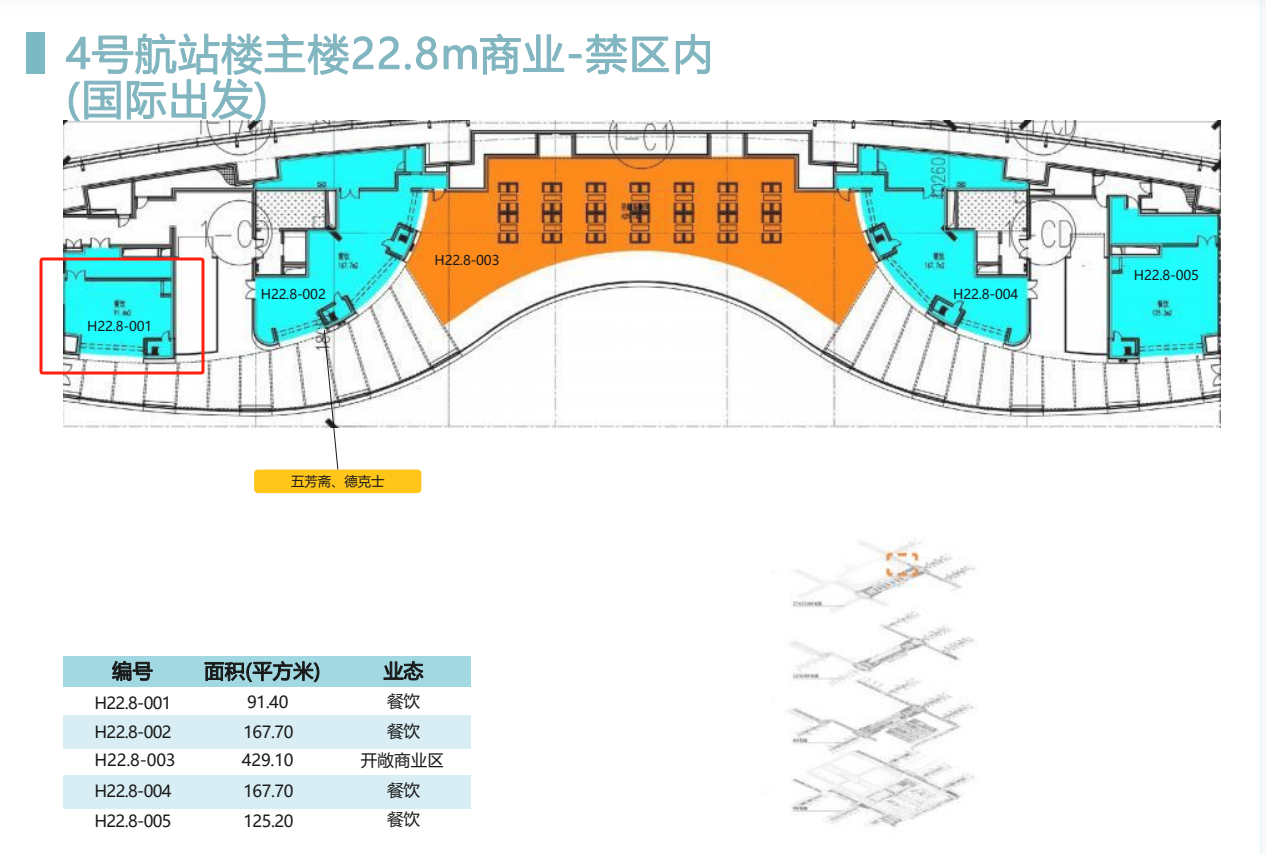4號航站樓主樓國際出發(fā)夾層(禁區(qū)內(nèi))H22.8-001商業(yè)點(diǎn)位
